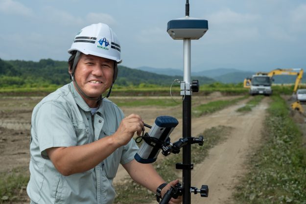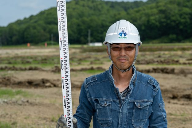 普段の仕事の内容 主に農業土木工事の現場監督をしています。主な内容は設計図面の修正や書類作成、発注者や農家さんとの打ち合わせです。現場に出てGNSSを使い測量や写真撮影をすることもあります。色々な地形の田んぼを農家さんが…